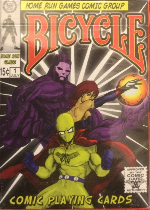 Issue 1 of the Comic Cards. We've included Super Heroes, Villains, Space Themes, Steam Punk, Cthulhu, Vikings, Fantasy and on and on. We hope to come out with a new Comic Card issue deck each year. Inspiration for the deck comes from Comics, people that we've seen at Cosplay events, & Comic Con. We wanted the deck to feel like a comic book, as you can see in the design. The art work is done by Brad Ashworth and Michael Scott. The cards are printed on Bicycle® Stock by The United States Playing Card Company and have a magic finish.