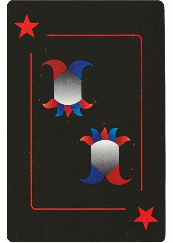 Cards are plastic/PVC and waterproof although the tuck box is paper. Suit colours are blue (diamonds), green (clubs), white (spades), and red (hearts).