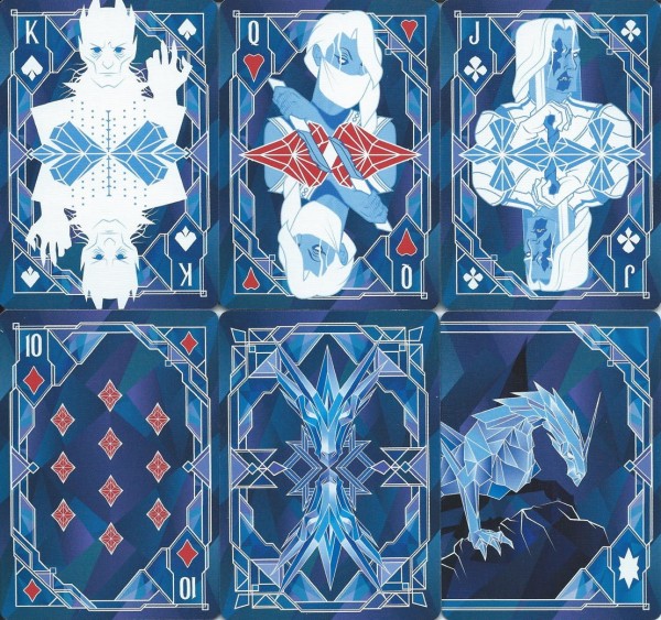 Steve Minty: "For the Dark Abyss, I approached the design with crystalline elegance and delicate peril like the sharpest sword made of ice. I designed it so some would be able to see it as ice while not being obvious. The characters are lead by the 3 generals (represented by spades) and the rest are the army of characters who have been 'converted'."COMPANY:Steve Minty Playing Cards