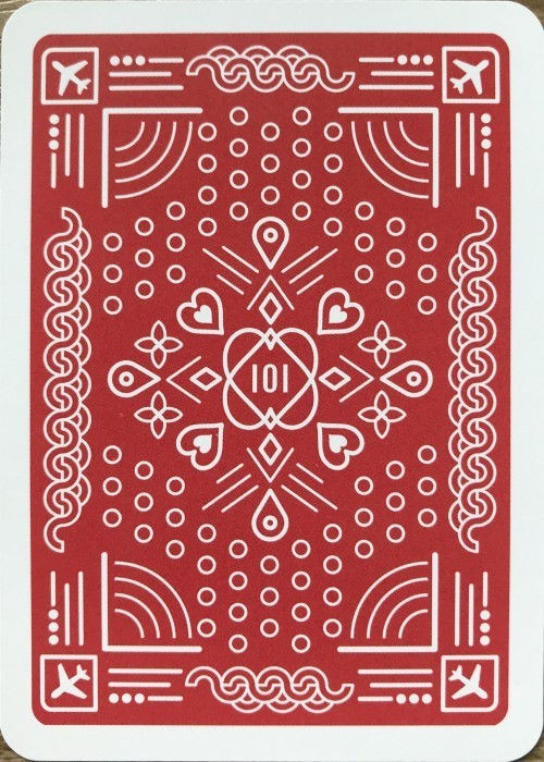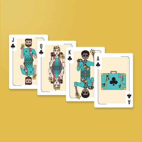 The deck is a standard deck of cards from Ace to King with four suits. We have designed the front of the cards around a travel theme.
