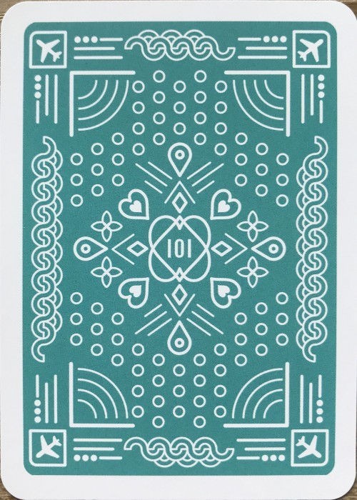The deck is a standard deck of cards from Ace to King with four suits. We have designed the front of the cards around a travel theme.