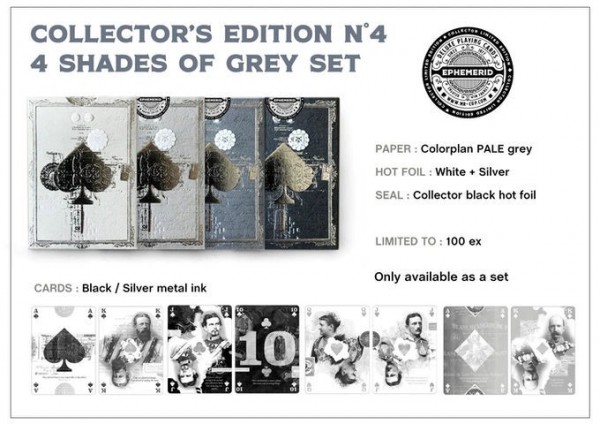 Each collector edition is very limited. The 4 shades of grey are only available together as a set and are limited to 100 copies each.