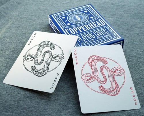 Like running your hands over the scales of a snake, Viper Finish is named for the silky feel with a unique smooth, dry, yet slippery texture. Viper Finish is the goldilocks of feel, handling, and durability. As a bonus, it is highly resistant to changes in humidity, which not only is great for some magic techniques like breather crimps, another bonus is you don't get that 'pop' in the deck when you fly or travel to a dry climate, and the decks don't inflate and get soggy in humid climates like Singapore or Hong Kong. A truly new feeling card stock like nothing else on the market. We hope these decks spark a bit of joy in your life, not only for how they look, but how they feel in your hands. Shuffle your way to a brighter and friendlier future! Paper + Coating + Heat curing + LPCC proprietary processes = VIPER FINISH™ Viper Finish blends the thinness and snap of Master / Diamond Finish, with the soft flex and feel of the popular but rare Stud Finish. All of these advantages without destroying the fibers of the paper by crushing the stock, which can make a deck feel great, but weaken the cards and makes them much less durable. If possible, it is better to "crush" the fibers at your own pace by breaking them in with regular use. Your decks will last longer and feel just how you want them to. The v.1 deck is Pantone Color of the Year 2020 is Classic Blue—a familiar, calming shade of azure. At Legends PCC, we are lovers of all things related to card and color, and feel these colors are well suited to a subtle injection of white (the card stock). Pantone’s colors seem to be a cleverly crafted color story rather than a trend, perhaps selected as psychological reaction to the difficult year the world has had in 2020, from political upheavals to the pandemic and general negativity. The daisy-like hues of illuminating yellow and enduring concrete-like ultimate grey forecast a brighter outlook for 2021 and will be popular colors for this year in print, houseware, editorial, the financial industry, and entertainment. We wanted to keep the deck simple and elegant, with artwork by friend of Legends and excellent designer Nick Vlow, as well as some artwork elements by Grayson Stallings. A card back that feels modern, but doesn't feel out of place in a poker game or magician's hands. With magician's in mind, we included 2 of our signature ex-stripper decks in the limited half-brick set. If you haven't tried these yet they are simply the best stripper decks on the market, with no exception. The tuck box also features edge painting - the white edges of the tuck are painted so they aren't as noticeable and don't ruin the aesthetic. Every detail matters in playing card production and packaging - including the unsightly white edge of the tuck paper stock, which we paint a matching color before packing and cello wrapping.