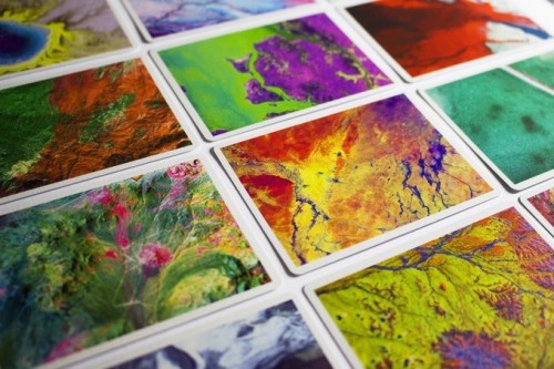 With some help from our friends over at NASA, we were able to skew satellite images of earth from space and create false color composites of interesting areas from within each image. This resulted in a fully custom deck of playing cards with 56 different backs and faces. Although every card is different, they retain the same theme. This means that all the cards still correlate, just in a unique way from your standard deck.