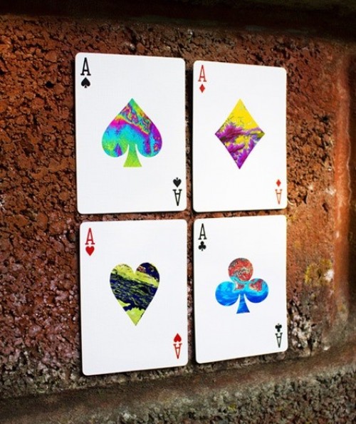 I initially encountered the idea for this deck whilst cutting out aerial perspective images of the earth for an art project. I noticed particular areas of the cuttings were intriguing and included a variety of colors, patterns, shapes and textures; these being many elements which help to shape a successful deck of cards.