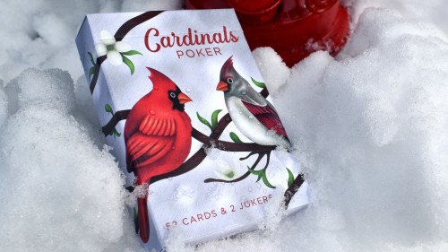 The Cardinals POKER Deck is perfect for any game night! The Tuck Box features a light grey winter-like background and a beautiful composition of the Cardinals pair. The final printing will be 4-Color Process on a premium Matte Stock and a clear UV Spot Ink overlay in strategic areas of the design.
