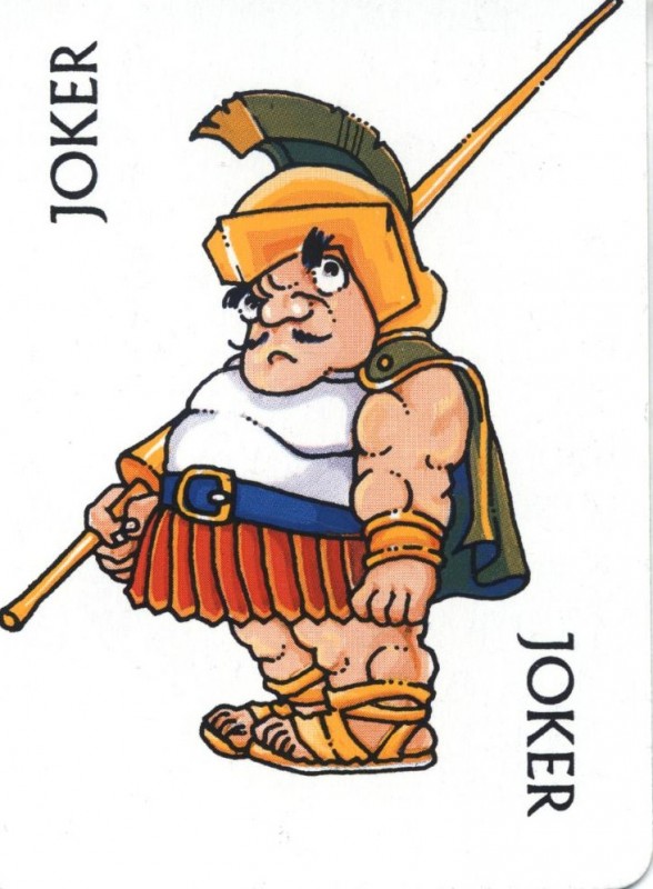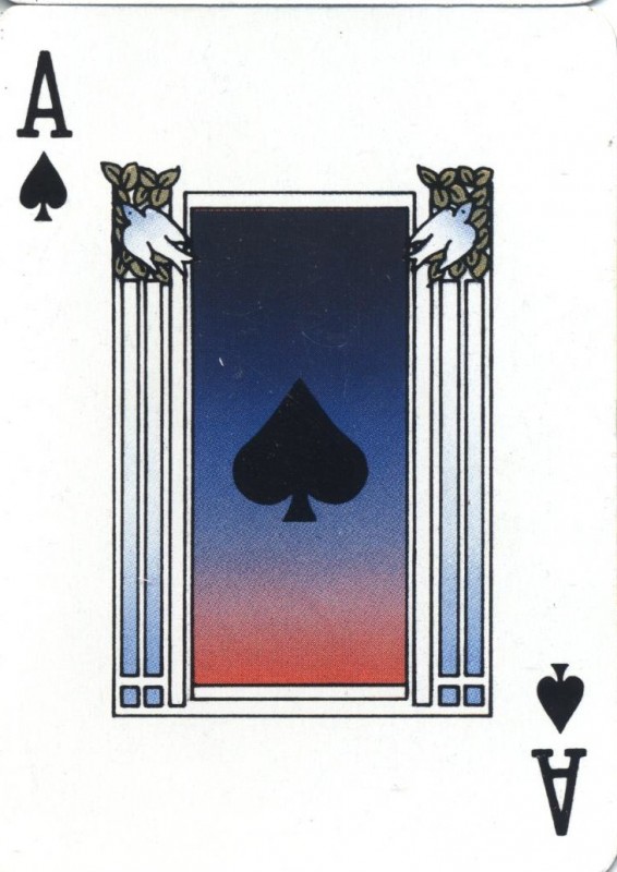 Malaysia-printed deck features dolphin two-way back and interesting jokers and ace of spades.