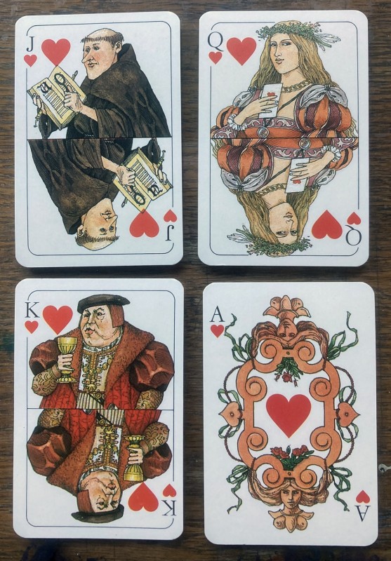 Non-standard Bridge playing card deck by Coeur of Germany, 34 cards published for and commemorating some of the history of Carl Zeiss Jena's vintage/antique optical items.