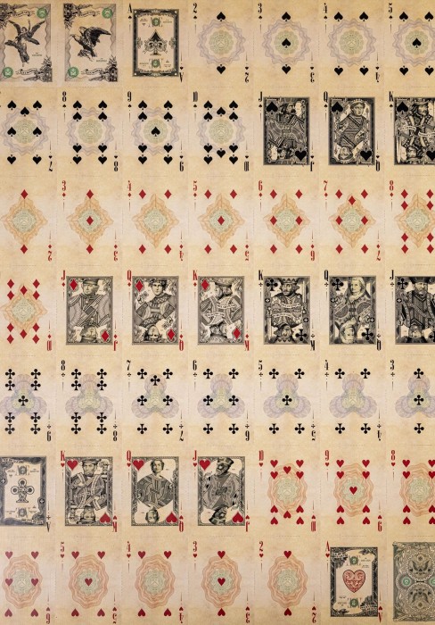 An uncut sheet is the actual set of playing cards, only before they have been cut and placed into the tuck cases. Uncut Sheets are easily framed into beautiful displays of art.