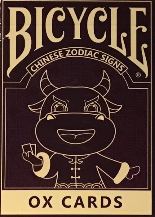 Bicycle Chinese Zodiac Signs "Ox" Playing Cards, in honour of Chinese New Year 2021, printed by USPCC, crushed stock, limited edition of 2500, unnumbered. Card back features the Chinese character for cow "牛" , stylized to read the year "2021" as well.