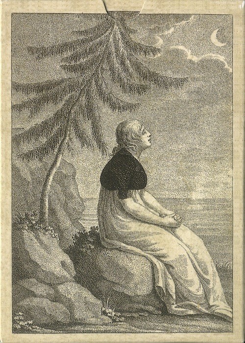 The very first transformation deck issued by Cotta is from 1805. This deck is probably the most famous of all six, and is incredibly scarce. Original illustrations were fiddling artworks done by hand, on copper plates that were manually engraved with stipple and etching, and the cards were printed on linen period stock that was 97 mm x 69 mm in size, with blank card backs and squared corners at that time. Only the court cards were hand-colored, while the number cards used red stencils.