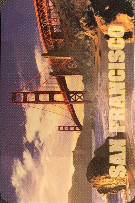 Souvenir deck featuring the golden gate bring and the San Francisco shoreline.