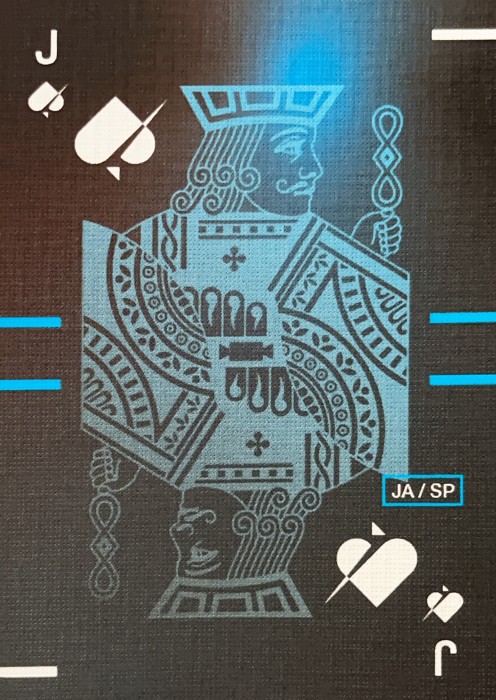 The deck uses my Patreon branding for season 1, blue and black gradients (already see in the GPE1 deck). The deck uses the underscore from my logo as is base, so all the blocks and details stem from that, features all new custom cards and tuck which begin the Patreon annual deck collection. This deck features 55 cards on the M31 linen card stock via MPC.