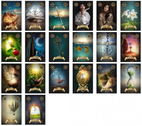 The deck “Golden dreams” is created in the style of bright illustrations. At the central part of the card is depicted their name. Cards denomination and their color placed at the height part. Thematic images of oracle cards receive opportunity work with the deck without the guidebook.