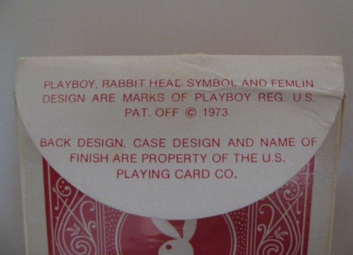 Original Playboy Femlin design playing cards were produced in 1973 by USPCC (Bicycle stock) and were avaliable in Blue and Red.