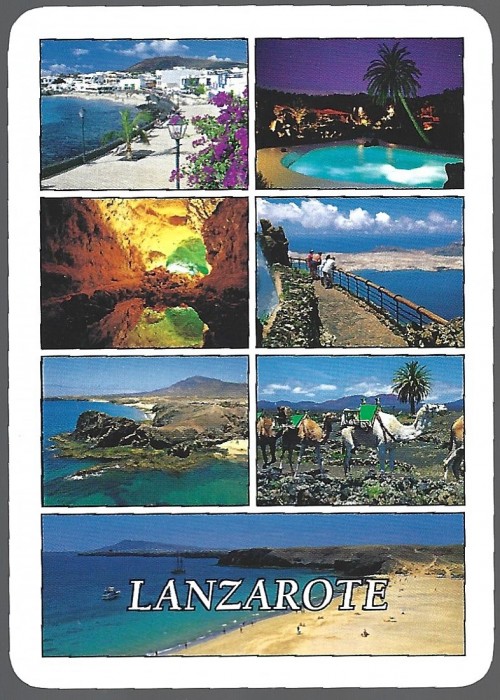 Typical tourist 54 card deck, including 2 jokers. House in a hard clear plastic case.