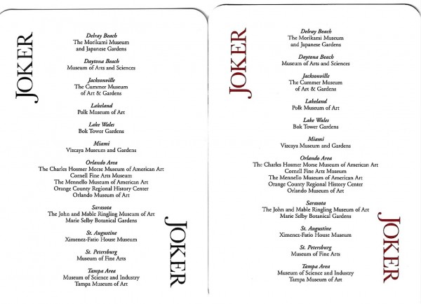 52 different colour photos of artefacts in a number of Florida museums. 2 Jokers detail the works.