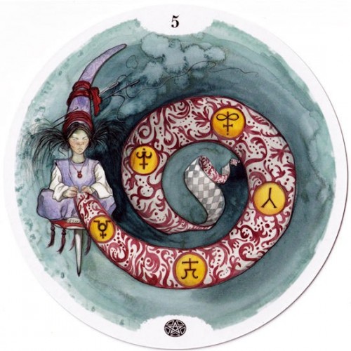 The Circle of Life Tarot is a round deck, so chosen to emphasise the concepts of circularity and cycles in life. The 78 unique illustrations depart from the usual symbolism, and are unconventional and imaginative Tarot journey.