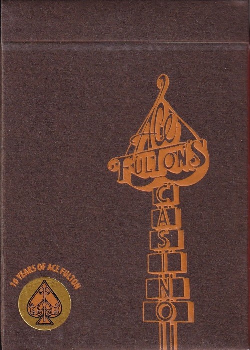 Each of these authentic reprints are housed in a special letterpressed tuck box complete with the gold emblem which is embossed on the front stating "TEN YEARS OF ACE FULTON." These backs are Fulton's long time dream--a back that matches the legendary tuck box.
