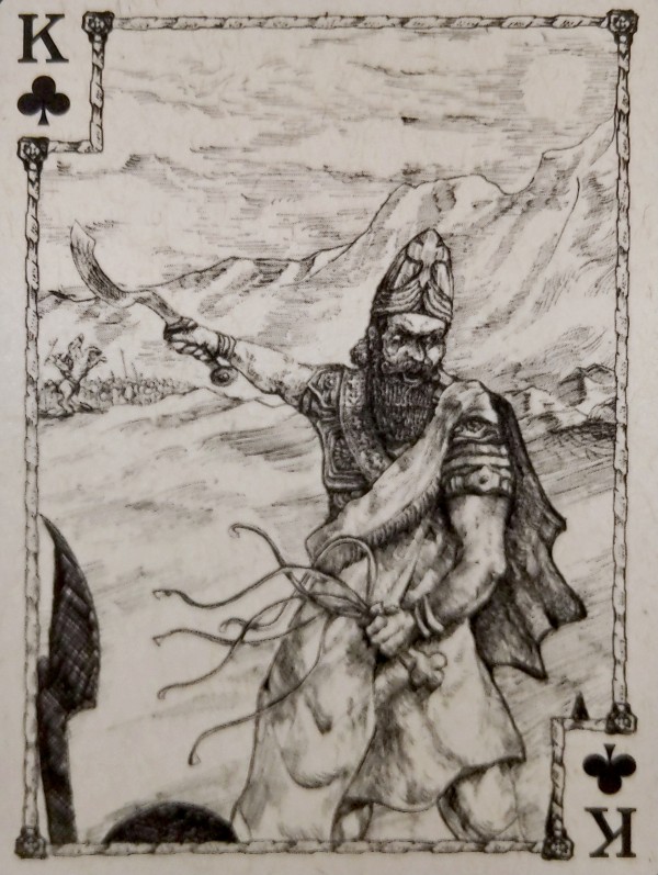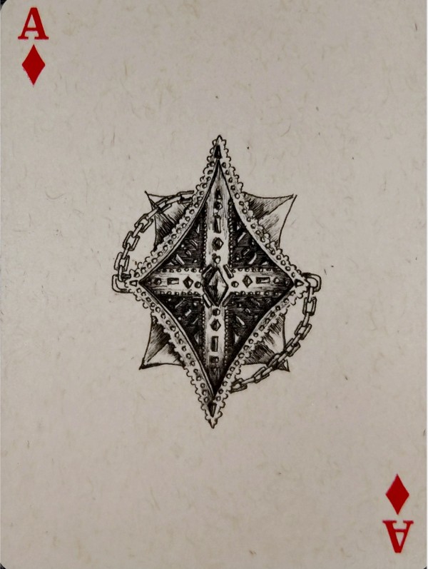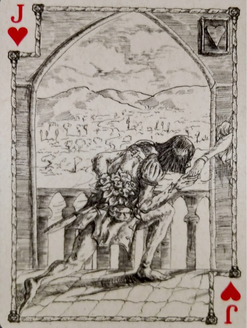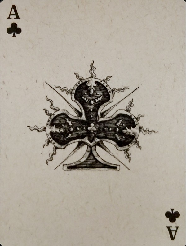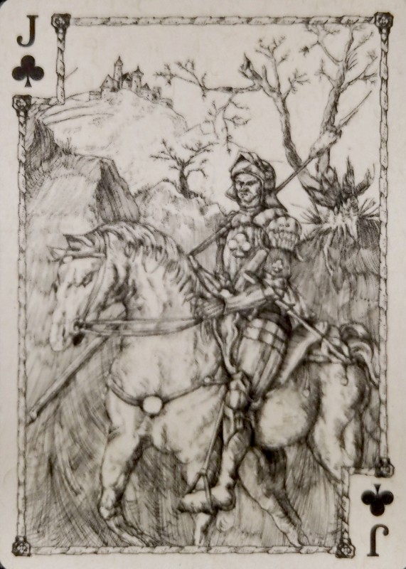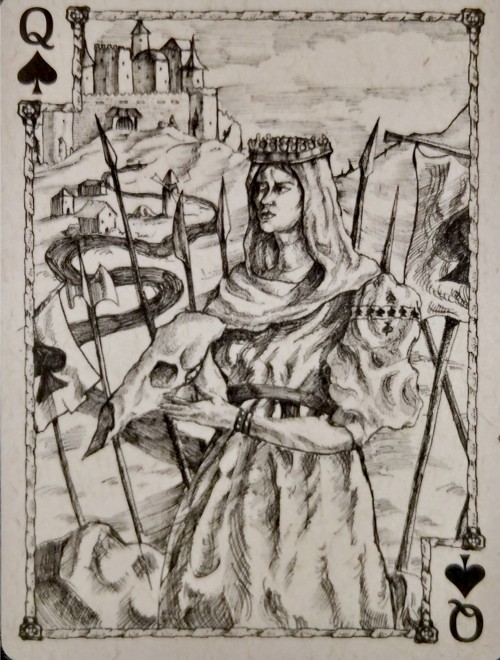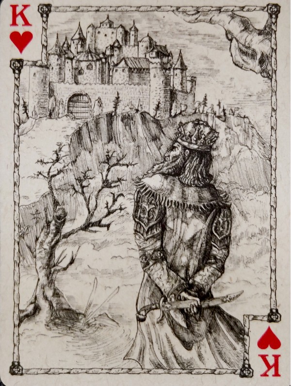 During wartime, the castle is a fortress and usually the target of the opposition. There is a belief that once the castle falls, the city falls. The King of Spades card shows an army general plotting how to invade the castle up ahead with the belief that if the castle falls, the city falls.