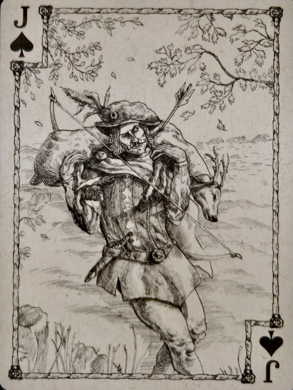 A beautifully hand-drawn limited edition deck of playing cards printed on new sustainable E27 card stock made from grass and leafy parts of plants. The Castle deck illustrates castle life during the medieval times. Limited to 2500 decks.