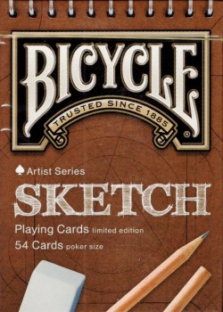 The Tuck Box for the Sketch Bicycle Deck emulates a traditional sketch pad. The spiral rings are visible on the front and back, and the sides graphically feature the individual edges of each sheet. The pencils, eraser and copy treatment on the front complete the sketch pad look in the design.