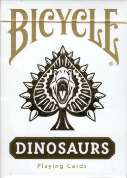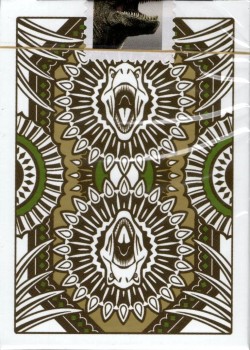 A fully custom dinosaur themed deck featuring metallic ink on the card backs and box.