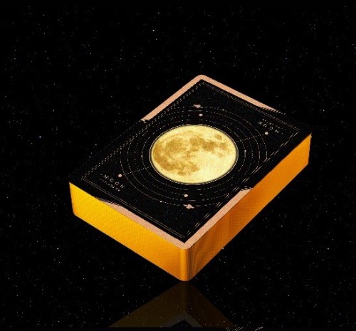 Limited edition of 399, numbered seal. The Moon Playing Cards is inspired by the moon, which is the closest planet to the Earth. The Regular Edition is limited to 5000 decks. And the main feature of the design is that its face cards have no suits and numbers, the artwork has been designed in a way to improve the effect of cardistry in action. Let me say this again, there are no Courts, no Numbers, only Jokers.