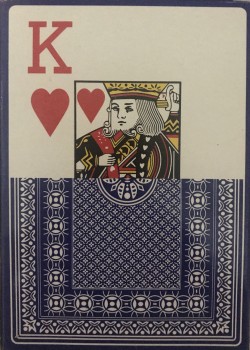 The plastic tuck box features new ukiyo-e illustration: water waves with surfing white cats that creates the beautiful background for the deck's title card, which some of them are holographic foiled. The cards feature featuriful light blue holographic foil: can be found on the water ripples pattern on the back along with all the pips and small signs and letter As on the faces.