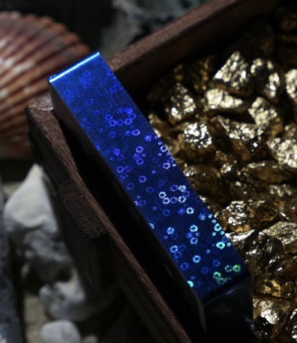 This is a special, ultra-limited gilded edition of the Bioluminescent playing cards. The card edges have a stunning blue foil with holographic bubbles that shift colors as they catch the light in different ways.