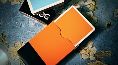 Bold, Simple, and Elegant. Perfect for Summer Fun Summer is a time for fun and freedom. Whether you\\\'re getting together with the guys for poker night or performing magic for strangers on the beach, it\\\'s a perfect time for a fresh pack of cards! The Summer NOC deck shares the strikingly simple design and thin borders as the NOC v2 deck, now in vibrant Orange and Light Blue colors. Custom Tuck, Ace, and Jokers The custom box matches the minimalism of the cards and carries an inspirational quote about the art and philosophy of keeping your mind, body, soul, and possessions free from clutter and distraction. The Ace of Spades and Jokers also carry a minimalistic yet attractive design. The court cards have been simplified and carry a color scheme that reflects the core NOC lineup.