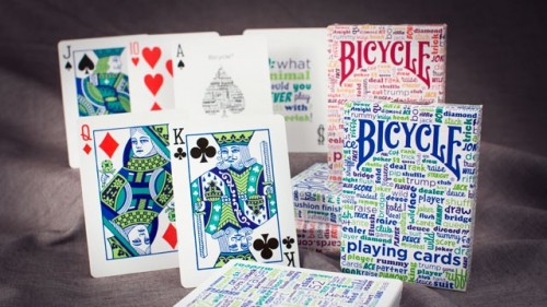This deck features playing card jargon on almost every surface, and comes in two colors: a warm set with reds, yellows, and oranges, and a cool set with blues, greens, and indigos. The Table Talk Deck features original artwork on the tuck, card back and the Ace of Spades. These decks were printed in the USA at the United States Playing Card Company and printed on premium stock with a quality finish.