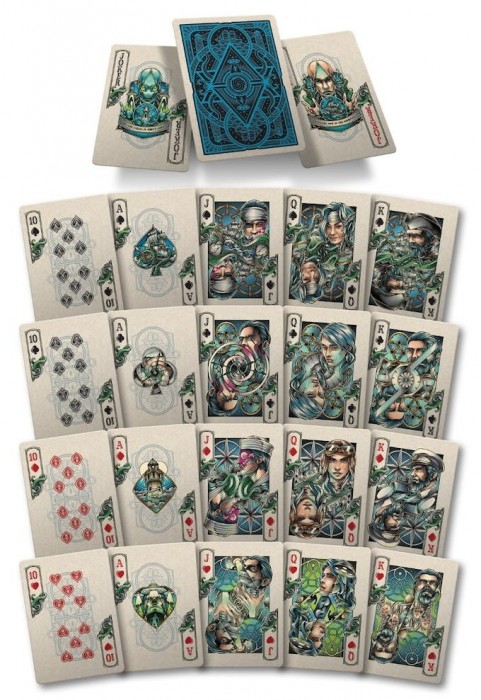 The third of the series, Divergent Realms Playing Cards' Gaddis Deck features hand-crafted detailed artwork, metallic inks and foil embossed tuck-boxes.
