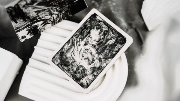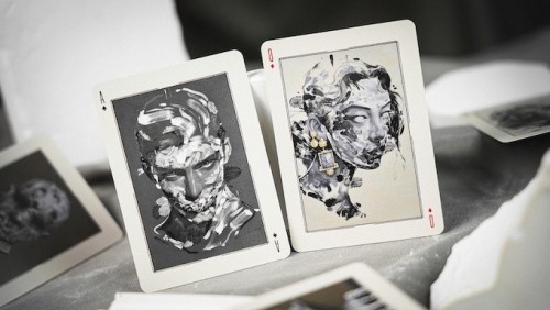 Silent Playing Cards is a series of decks showcasing the amazing works of Korean artist Lee Killust. His illustrations are exhibited in a form of 52 playing cards. The artworks of Lee.K presenting portrait paintings of people without their mouths, symbolizing the silenced words of expressions. Gray Edition features all different 54 artworks on the faces, on both the standard 52 cards and both Jokers. The back design is also showcasing Lee.K's work within the standard white border.