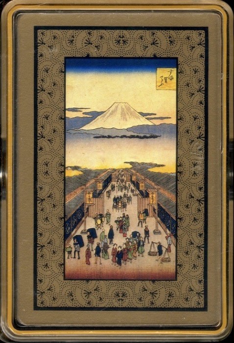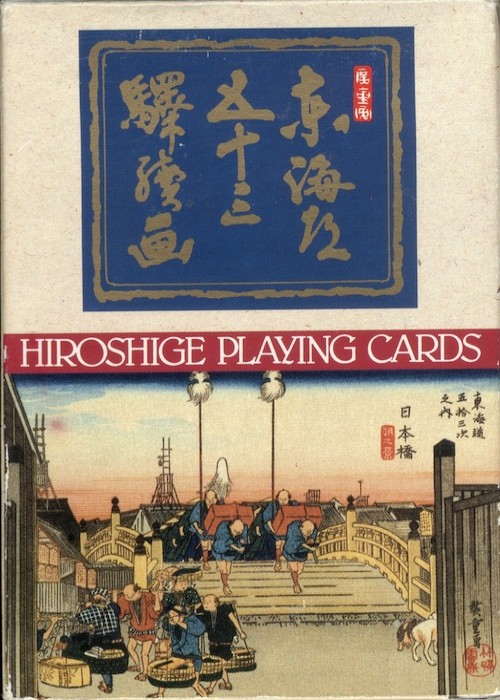 Each card shows a wood block print in the Ukiyo-E style made by Hiroshige Ando (1797-1858) during the stopovers on a trip from Edo (Tokyo) to Kyoto, Japan.