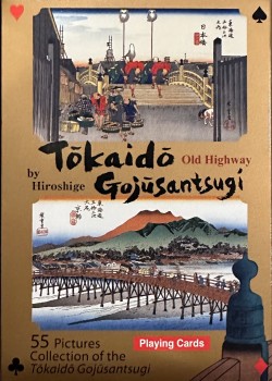 Each card shows a wood block print in the Ukiyo-E style made by Hiroshige Ando (1797-1858) during the stopovers on a trip from Edo (Tokyo) to Kyoto, Japan.