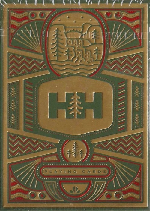 This deck was created in collaboration with the stunning paintings of Isaac LeFever of the beautiful Hocking Hills State Park in Ohio. The deck features a dark green embossed tuck with both gold and orange foiling. The court cards feature paintings of various beautiful spots in Hocking Hills State Park during different seasons. The Hocking Hills Logo and badge design was created by Nick Johnson.