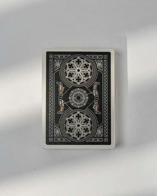 The golden patterns adorning the back of each card are a true homage to XIX architecture. Delicate filigree intertwines with graceful flourishes, forming a tapestry of timeless elegance.
