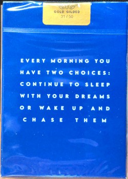 Almost 2 years after the first edition (Red), the blue edition is finally here! Only one difference: the color of the backs and jokers. You can find all the details and the history about the deck on the kickstarter campaign of the first edition here : https://www.kickstarter.com/projects/1152871848/mindset-playing-cards