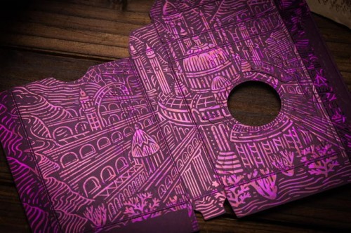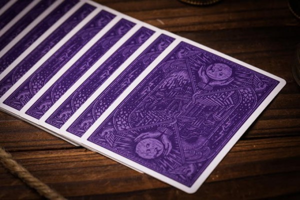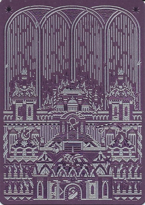 In contrast to the intricate detailing found on the box and the reverse sides of the cards, the number cards introduce a refreshing simplicity. In both editions, the hearts and diamonds are red with golden detailing, and the clubs and spades are black with gold details for the Rise Edition, and purple on purple in the Sunken Edition.