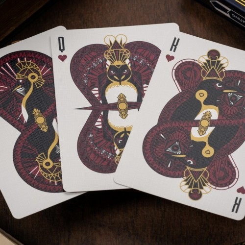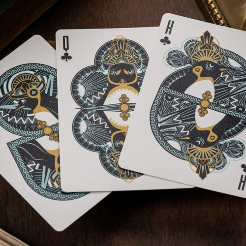 King Deco Playing Cards combine the timeless appeal of art deco styling with a bit of modern flair to capture the majesty of some of earth's most amazing creatures - Penguins! The faces have custom pips and corner indexes, while the court cards each feature a different royal penguin. Duplicate masquerade jester jokers are provided, along with two gaff cards for magic tricks.
