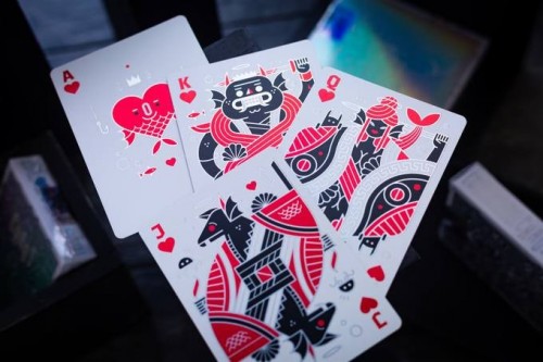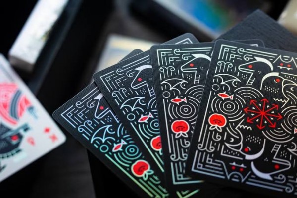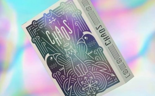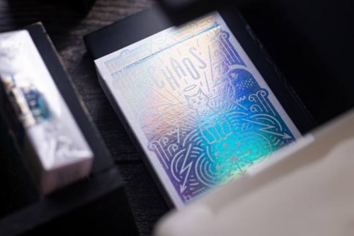 Chaos Playing Cards features mythological theme and the concept of CHAOS! The Aces features enlarged customized pip, with each suit shows the characteristics of one of the four realms found in the Realm of Chaos. The Number Pips features customized pips that both features faces inside along with some symbols. The Courts feature some of the famous mythological creatures exist in legends. There are 4 Joker Cards - 2 of them features the main deities of the Realm: The Cat who wants Chaos and The Goddess who wants Order. The cards feature holographic silver cold foil on both sides. Cards are printed by Kingstar