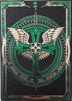 Legend has it that the Royal Sanctuary was a sacred place, conceived by the gods themselves, standing as a tribute to the nobility and honor of those who governed the ancient kingdoms with wisdom and justice. The Royal Sanctuary playing cards pay homage to this sacred legacy, capturing the essence of this mythical place in each card. The designs exude the same solemnity and grandeur that once filled the Royal Sanctuary, reminding mortals of the importance of nobility, wisdom, and divinity. The Royal Sanctuary Noble Emerald Edition features an embossed tuckbox made with black soft-touch stock and Black, Gold and Turquois foils. The cards are printed on a high-quality German linen card stock with golden metallic ink on the backs and faces.
