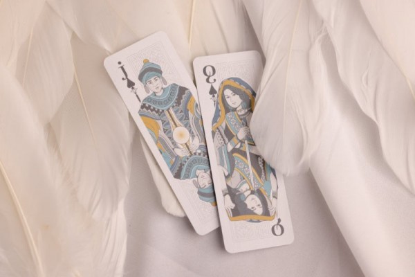 The MINI Version downsize the cards half the size. It is in size of a label strip - half the shape of a poker-size playing cards when dissected vertically. The artworks presented in this deck are still playable, and the cards have the same stock and finishes as other playing cards produced by Room One.