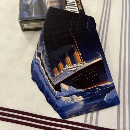 RJ Tomlinson of Barclay Mountains presents an interactive deck of playing cards of the famous cruise ship RMS Titanic. Under 52 Quests, you are to embark on a quest to learn about the ship itself. The cards feature historical photographs and/or illustrations of passangers or crews along with some rooms of the ship along with important events. Each card will have a QR code, which will take you to a webpage which you can learn more of the topic as well as playing the quest. The deck is perfect for any history enthusiast and playing cards collector.