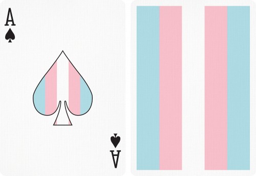 The next Goos deck adopts another flag from the Pride flags collection. This shows Trans, with its iconic pastel blue, pink, and white color stripes flag. The Ace of Spades is enlarged with the Trans flag inside.