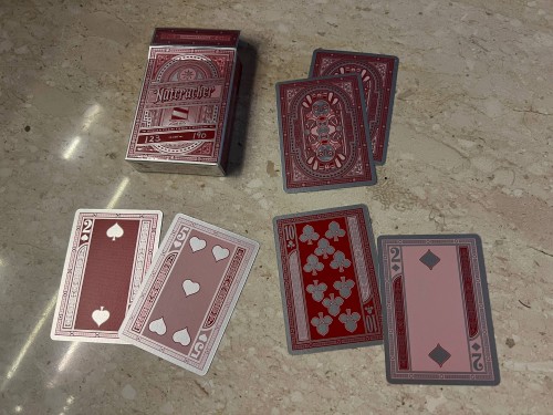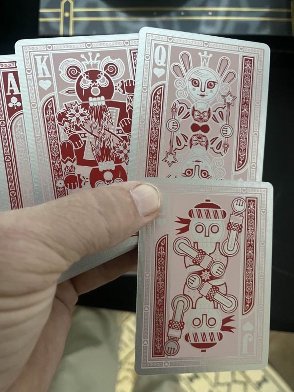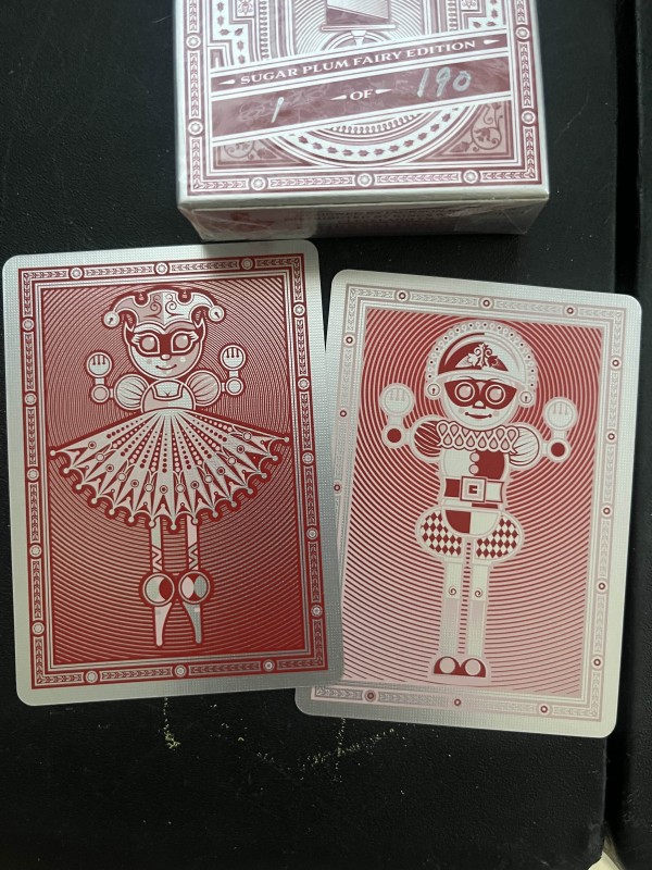 This is the remastered "Nutcracker" from KWP 2019 Subs. The deck's design is adjusted and the cards are printed in KWPCC - artworks adorned with metallic foil. The Sugar Plum Edition comes with a new color scheme that matches with the sweet vibe of the titular character of the Sugar Plum Fairy - the deck has the colors of red and pastel pink with metallic silver foil. The deck contains extras of two double backer cards.