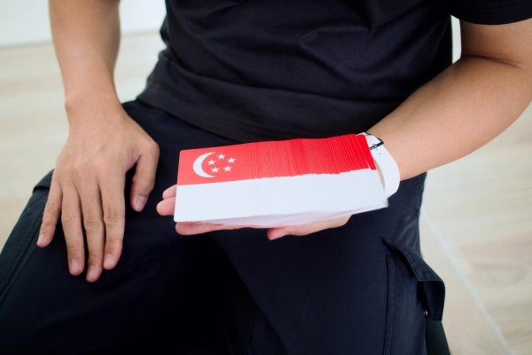 The Virts invite you to celebrate Singapore's 60th independence with The Virtuoso P1 Singapore Playing Cards. Painted in the red and white of the Singapore flag, the Virtuoso P1 SG’s design begins with a bold crimson circle at its center - A tribute to our nation’s nickname, the “Little Red Dot”. Surrounding it is our three-dimensional PRISM back, now extended to the very edge. It's back design connects with the elements on the front side - symbolizing how the people of Singapore comes together. And the best part - the red parts on the front creates the special feature of which how the deck came to be: every deck comes with Singapore protrait flag - place that card on the top of the faces, spread the deck, and you can form the Singapore flag!