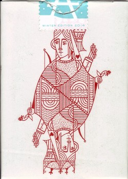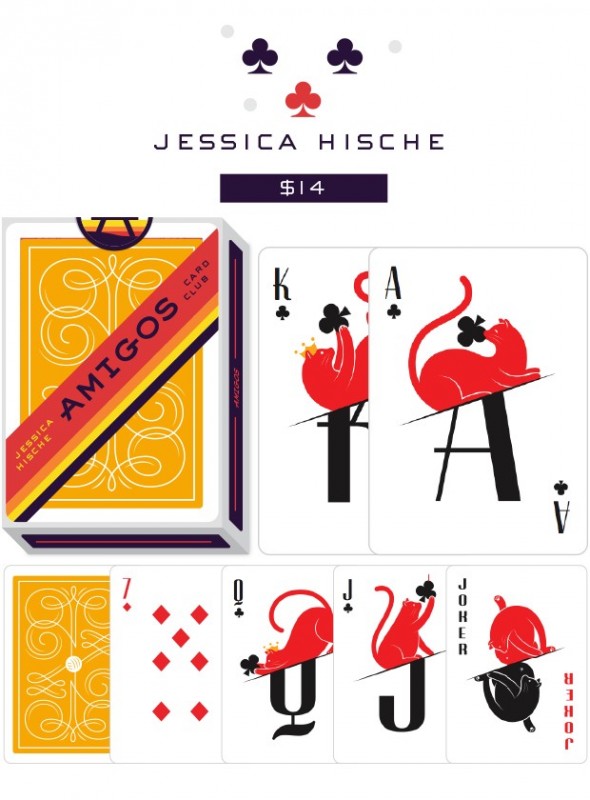 Funded as a Kickstarter project on November 9, 2014 with $33,851 pledged from 1,017 backers, this was a selective 3 deck project. Each of the 3 decks were designed by different artists: Jessica Hische (cat theme), Frank Chimero (line art), & Alonzo Felix (space theme) and was created by Fictive Kin. The decks were printed by Expert Playing Card Company.