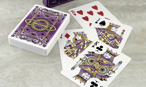 Royalty has always had a history of donning the color purple and now it's officially in a deck of playing cards. The Viola Playing Cards is coated in beautiful shades of purple. It also displays waves and curves that are similar to the ones in the famous Viola flower. Printed by USPCC, this deck will truly stand out in your collection.